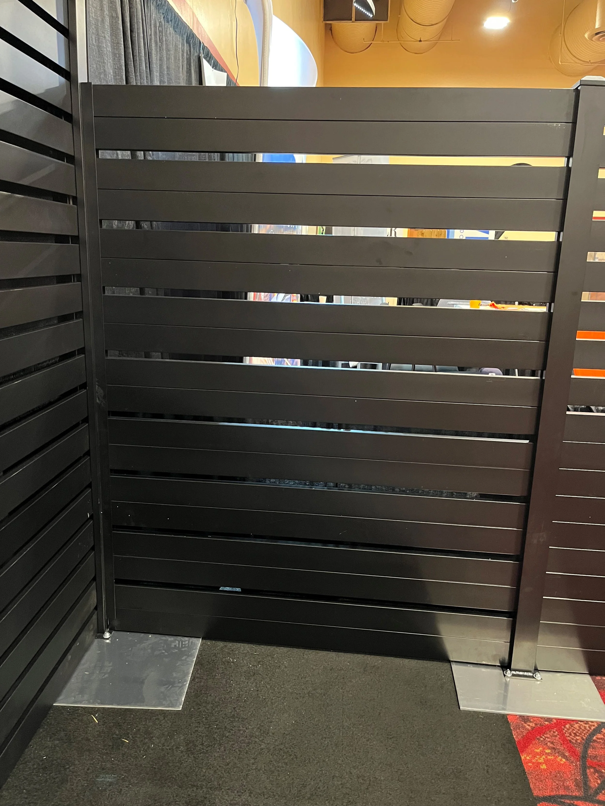 Aluminum-frame fence with aluminum picket fill available in privacy, semi-privacy, and mixed configurations.